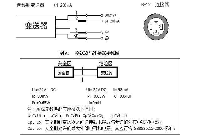 6、使用本产品应在供电线路和变送器之间加装符合GB3836.4标准的安全栅。